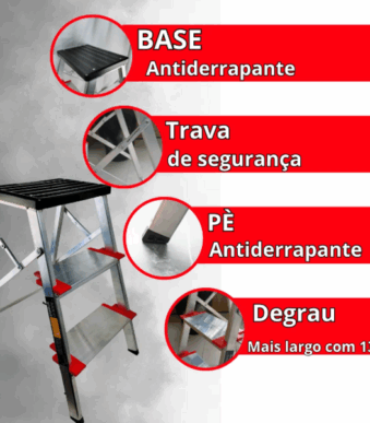 Banqueta Escada Doméstica 3 Degraus Alumínio Gibafér