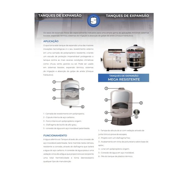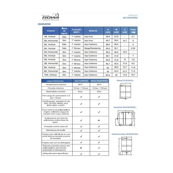 Tanque de expansão 20l horizontal aço carbono os tanques de expansão rowa são especialmente indicados para uma ampla gama de aplicações, incluindo os sistemas booster, expansão térmica, sistemas de irrigação, e absorção do golpe de aríete (golpe hidráulico)