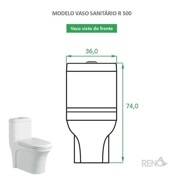 Vaso sanitário monobloco reno r 500. produto com nota fiscal e garantia. acompanha assento com fechamento suave de encaixe com fácil remoção para limpeza anel de vedação. E parafusos para a instalação. dimensões do produto na terceira foto. esse produto pode ser instalado em todo encanamento feito para vaso sanitário com caixa acoplada. existem modelos de vaso sanitario com caixa acoplada de outras marcas com a mesma estética porém a qualidade é diferente. Todas as peças da reno são testadas e possuem alto padrão de sucção. Não trocamos não aceitamos como parte de pagamento ou damos assistência para peças compradas de outras marcas! Agradecemos a compreensão. especificações do produto: marca – reno modelo – r 500 cor: branca design diferenciado descarga ecológica – até 40% de economia de água: dois botões de acionamento 3/6 l jato plus e sistema ciclone. jato plus – furo na frente da porcelana que quando acionada a descarga 30% da água sai na parte ao redor do vaso e 70% pelo jato embaixo que empurra os detritos eficientemente para o sifão. produto importado – marca nacional nosso diferencial – funcionários dentro da fábrica fazendo o controle de qualidade de nossos produtos. Estamos sempre atentos as inovações na tecnologia de descarga para implementarmos em nossos produtos. evita sujeira entre a caixa e o assento pois é uma peça única ou seja um vaso monobloco